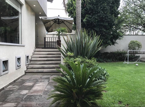 Planta baja: gran vestíbulo recibidor a doble altura, medio baño de visitas, estudio, sala y comedor con vista y salida al jardín de 300m2, ideal para pasar grandes momentos en familia. Tiene además una gran terraza, antecomedor con family, cocina equipada y área de lavado.lanta alta, sala de tv muy amplia, 3 recámaras, cada una con baño y vestidor, la principal muy grande con estudio integrado . En planta semisótano, salón de juegos con medio baño, cuarto de servicio, cuarto de chóferes con baño, bodega, cuarto de máquinas y estacionamiento techado para 6 autos. Equipamiento: cisterna 10,000 lts,con sistema hidroneumático y calefacción hidrónica.
