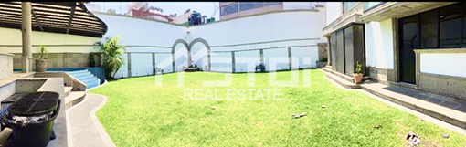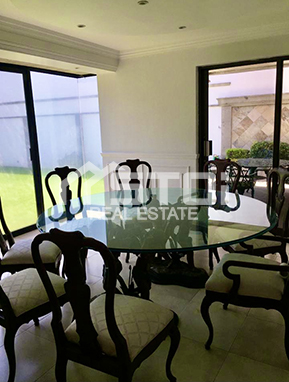 Tiene 795m2 de terreno y 1200m2 de construcción, 3 recámaras muy grandes con vestidor y baño cada una, sala y comedor muy amplios, despacho, desayunador independiente con vista al jardín, cocina integral muy amplia con alacena, medio baño de visitas, sala de T.V, jardín de 300 m2, alberca, terraza, baño completo con sauna en el área del jardín, terraza con asador, cava, cuarto de máquinas, 2 cuartos de servicio con baño, caseta de vigilancia privada, estacionamiento para 10 autos. .