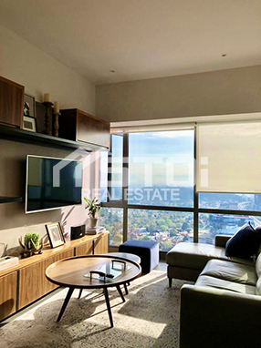 Con una vista inigualable en un piso 26 se ubica este departamento de lujo con una superficie de 110m2, 2 recámaras, 2 baños, estudio, cocina integral abierta y con barra de granito, balcón, área de lavado, medio baño de visitas.
