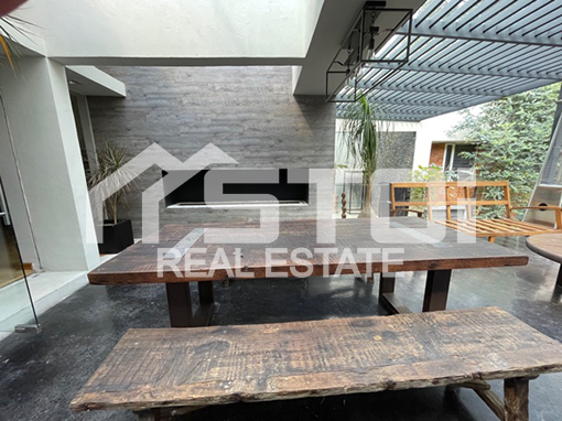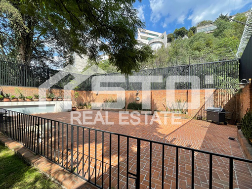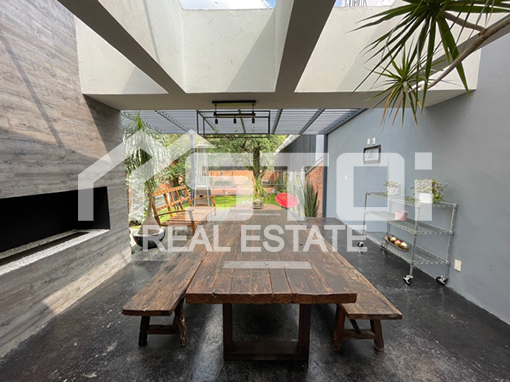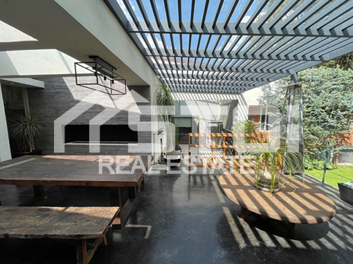 Tiene un terreno de 700m2 y una construcción de 560m2, sala con chimenea, comedor independiente con salida al jardín, sala de juegos, medio baño de visitas, desayunador con salida a una pequeña terraza, cocina integral, 3 recámaras con baño, la principal con vestidor, sala de TV, terraza con chimenea y techos de cristal templado, jardín de 150m2 con terraza muy grande, cava de 150m2 con medio baño, garaje para 4 autos (2 al descubierto y 2 techados).