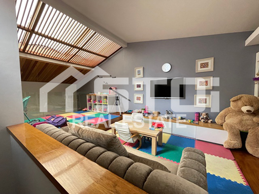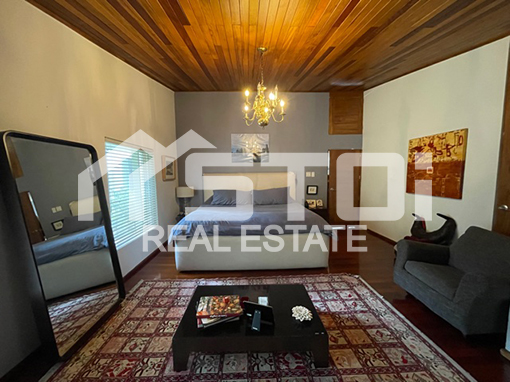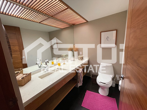 Desarrollada prácticamente en un nivel con amplios espacios, acabados de lujo, muy buena luz natural y techos altos que le dan sensación de más amplitud.